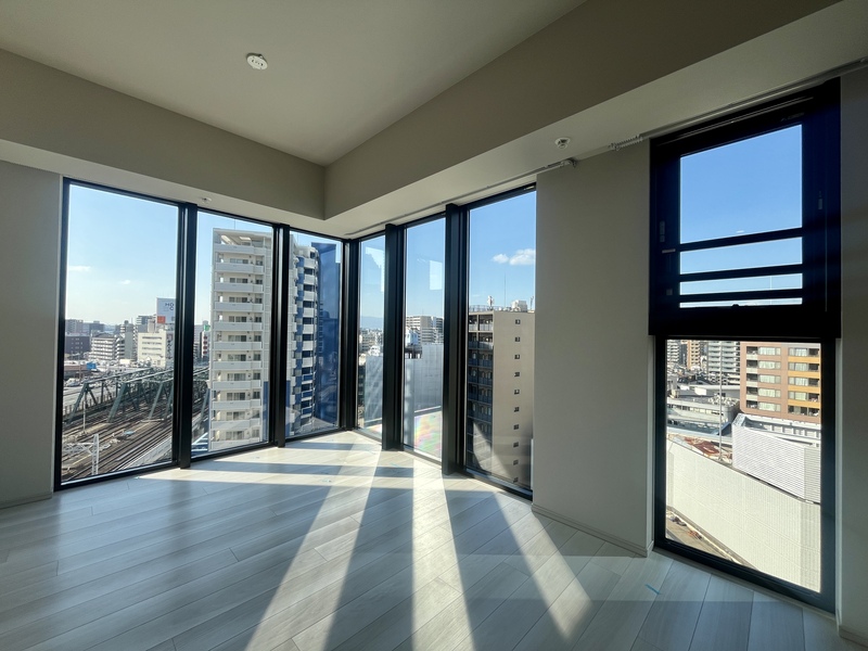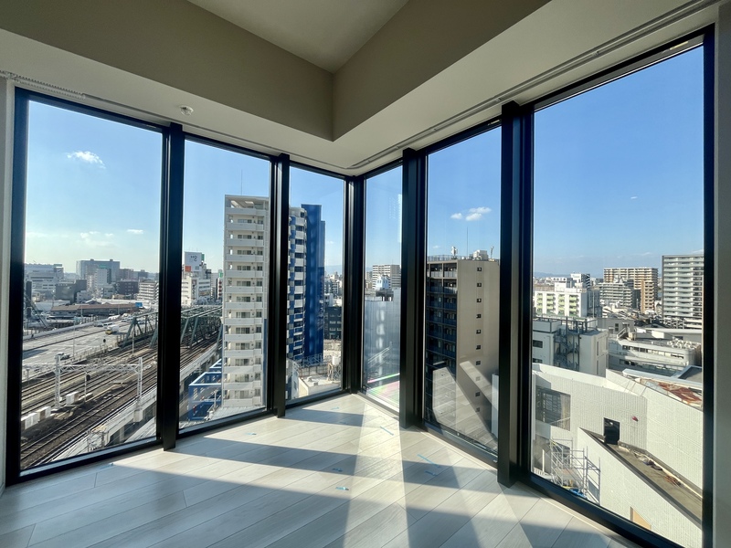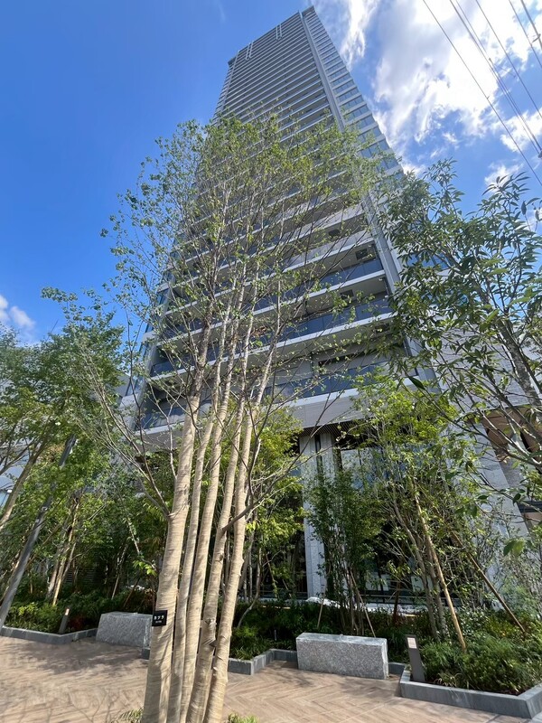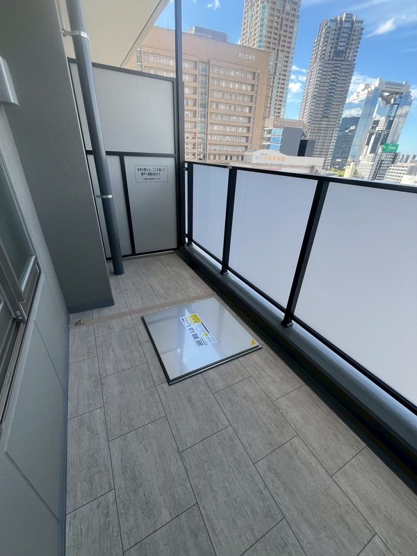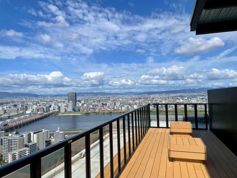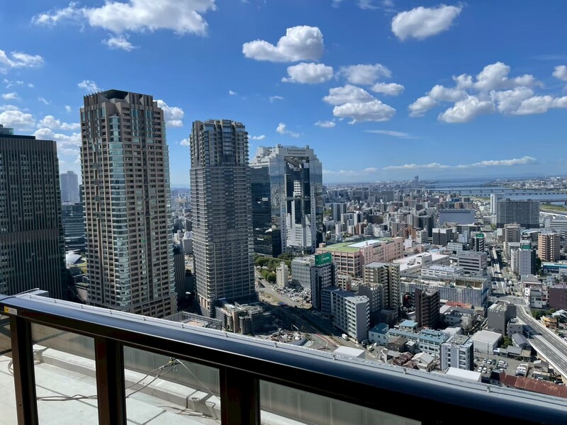 - バルコニー グラングリーン大阪を望む眺望と上質な床タイルが魅力のバルコニー