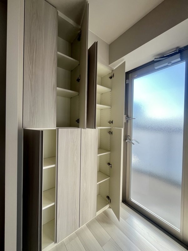 - 収納 大容量の可動棚で、食品庫としても使える便利な収納スペース