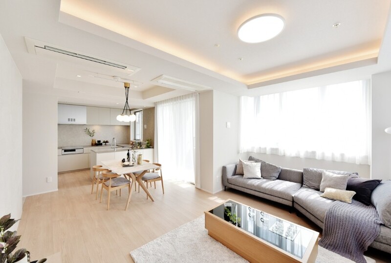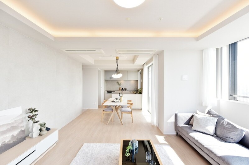 - リビング リビングからダイニング、キッチンまで一直線につながる開放的なLDK。 大きな窓から自然光が差し込み、白基調の内装と淡い木目フロアが、空間をより広く明るく演出します。 間接照明と天井埋込エアコンが、デ…