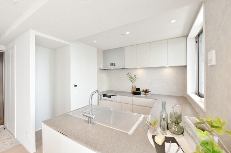 - キッチン リビング全体を見渡せる開放的な対面キッチンは、白を基調とした上質なデザインで空間に一体感を演出。 ワークトップはゆとりあるサイズ感で、調理・配膳・家事動線もスムーズ。 自然光が入る窓付きで、明るく清…